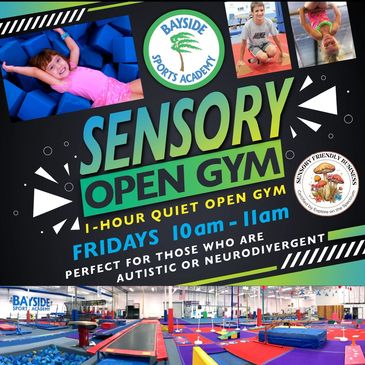 Bayside now offers Sensory friendly open gym! Enjoy low lights, no music, and free roam of the gym. Make sure to book before you go.