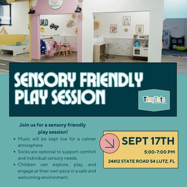 Sensory Friendly Play at Tiny Tots Playtown, in Lutz. THREE calm down areas and a full sensory room. Varies in day monthly so check the website for the day.
